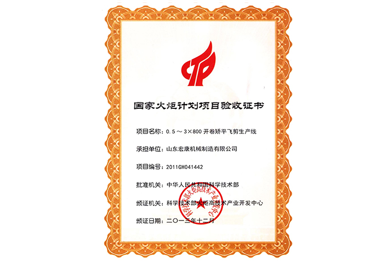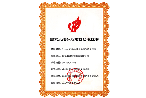 國家(jiā)火矩計劃項目驗收書