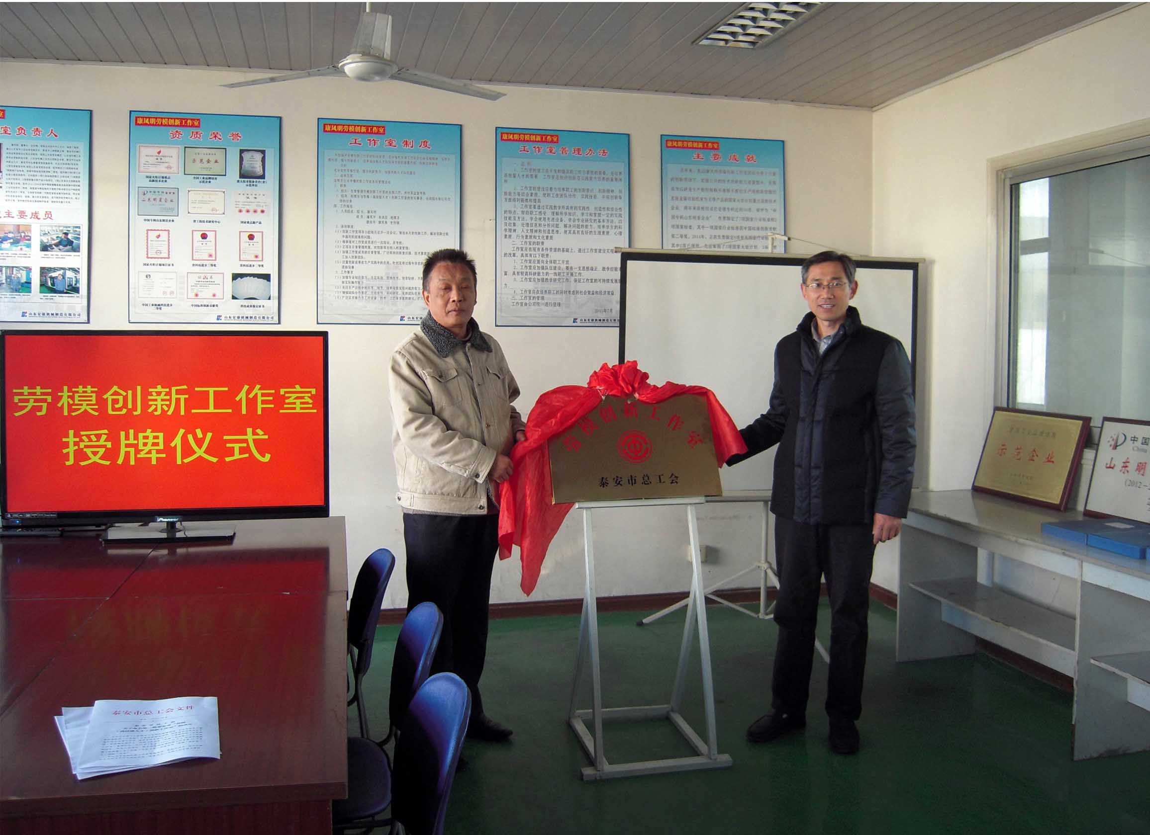根據泰會(2014)50號《泰安市總工會關於命名第二批泰安市“勞模(高技能人才(cái))創新工作室”的(de)決定》文件精(jīng)神,“康鳳明勞模(mó)創新工作室”被命名為第二批泰安市“勞模創新工作(zuò)室”,這是(shì)繼今年5月份“康鳳明勞模創新(xīn)工作室”被岱嶽區總(zǒng)工會首批命名後取得的又一殊榮。12月5日,市總工(gōng)會生產保護部部長劉(liú)軍、岱嶽區總工會常務副主席李福江等市區部門領導來集團公(gōng)司(sī)舉行(háng)了揭牌、授牌(pái)、掛(guà)牌儀式。副(fù)總經理、工會主席聶化濤等領導(dǎo)參加了活動儀式。