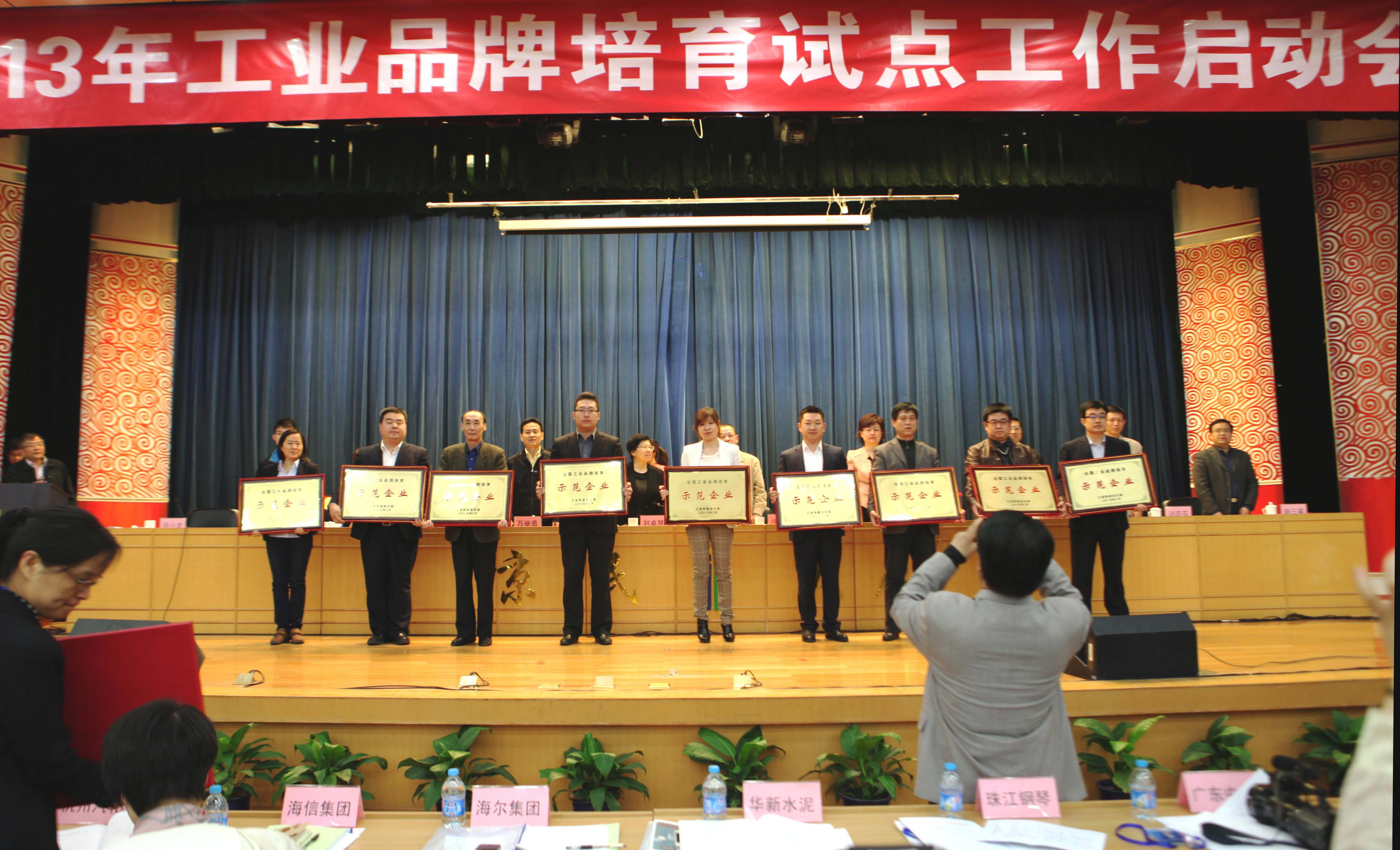 4月25日,由國家(jiā)工信部科技司組織的2013年工業品牌培育試點工作啟動會暨2012年工業品牌培育示範企業表彰大(dà)會(huì)在北京召開。會議總結了2012年工作成績,為36家品牌培育示範企業授牌,並部署開展2013年的工作。來(lái)自全國工信主管部門及有關單位、協會和企(qǐ)業的近500位專家和代表出(chū)席會議。集團公司成為鍛壓機械行業唯(wéi)一一家獲(huò)得工信部“2012年工業品牌(pái)培育示範企業”榮(róng)譽稱號的企業,受集團董事長(zhǎng)、總經理(lǐ)康鳳明委托,常(cháng)務副總經理潘憲(xiàn)平代表集(jí)團參加會(huì)議(yì)並上台領取授牌。