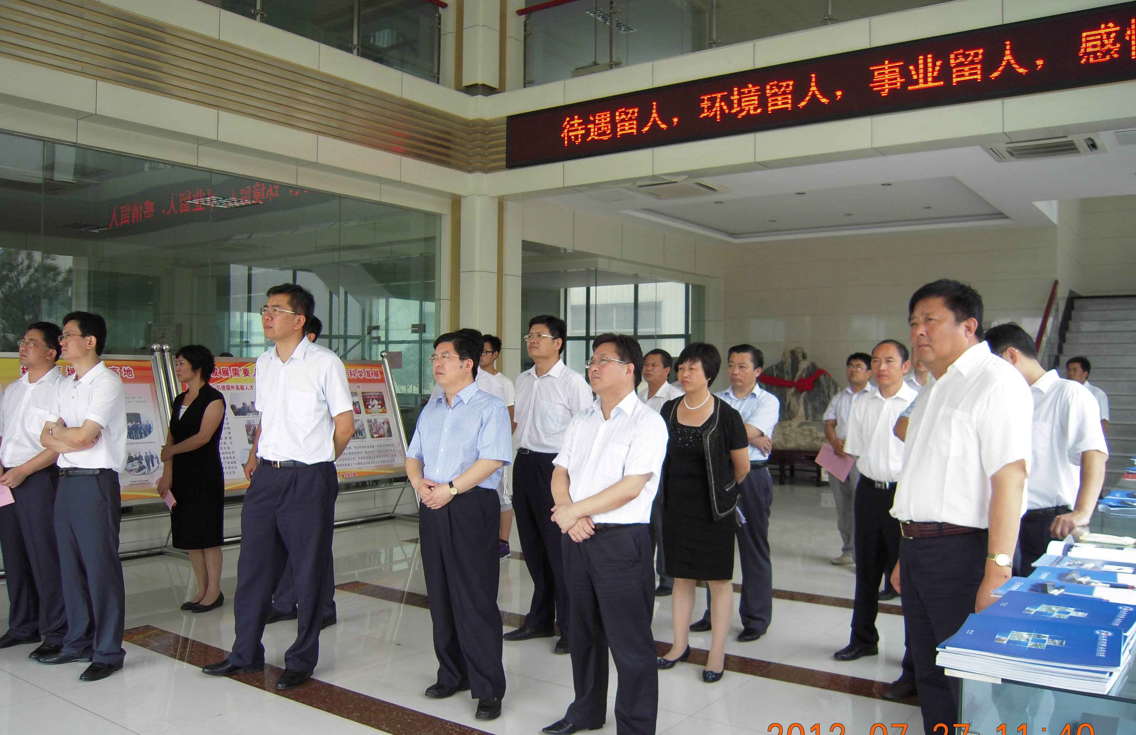 7月27日,市(shì)委副書記丁毅,市委常委、組織部長(zhǎng)陳(chén)平,副市長徐恩虎帶領泰安市(shì)人才工作觀摩推進會與會人員來集團(tuán)檢查人才工作情況。區委書記、區(qū)人(rén)大常(cháng)委會主任王永征,區委常委、組織部長蔡麗(lì)霞(xiá),區委常委、辦公室主任劉琳等領導陪同活動。集團董事長、總經理康鳳明向與會領導匯報(bào)工(gōng)作,常務副總經理潘憲平、副總經(jīng)理聶化濤等領導陪同活動。