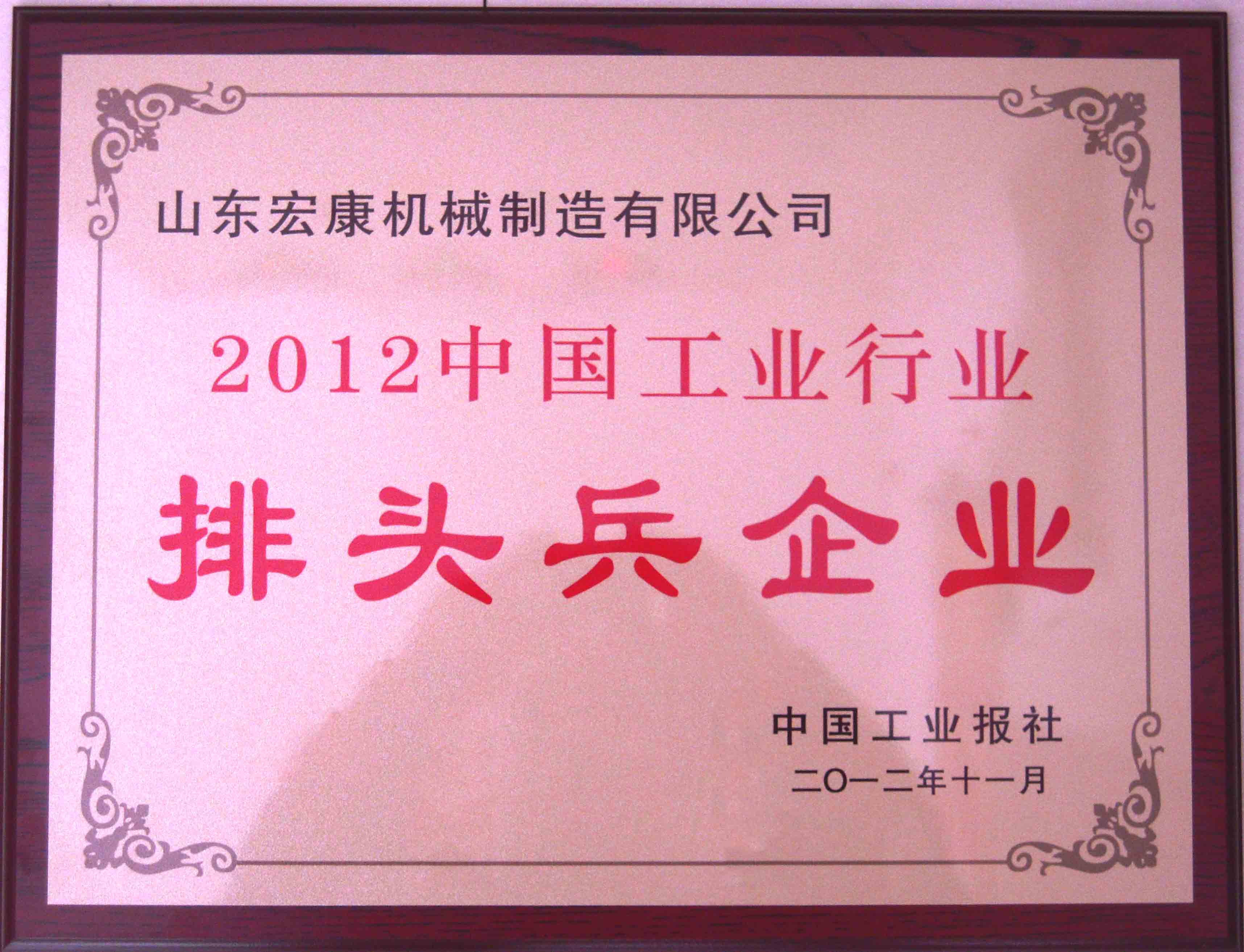 11月1日,中國工業行業排頭兵企業發(fā)布(bù)暨轉(zhuǎn)型升級發展論壇在北京隆重舉行(háng),山東www.草莓视频.com機械製造有限(xiàn)公司喜獲“2012金屬製造(zào)行業(yè)排頭兵企業”榮譽稱號,受董事(shì)長委(wěi)托,常務副總經理潘憲平代表集團公司赴京領獎。