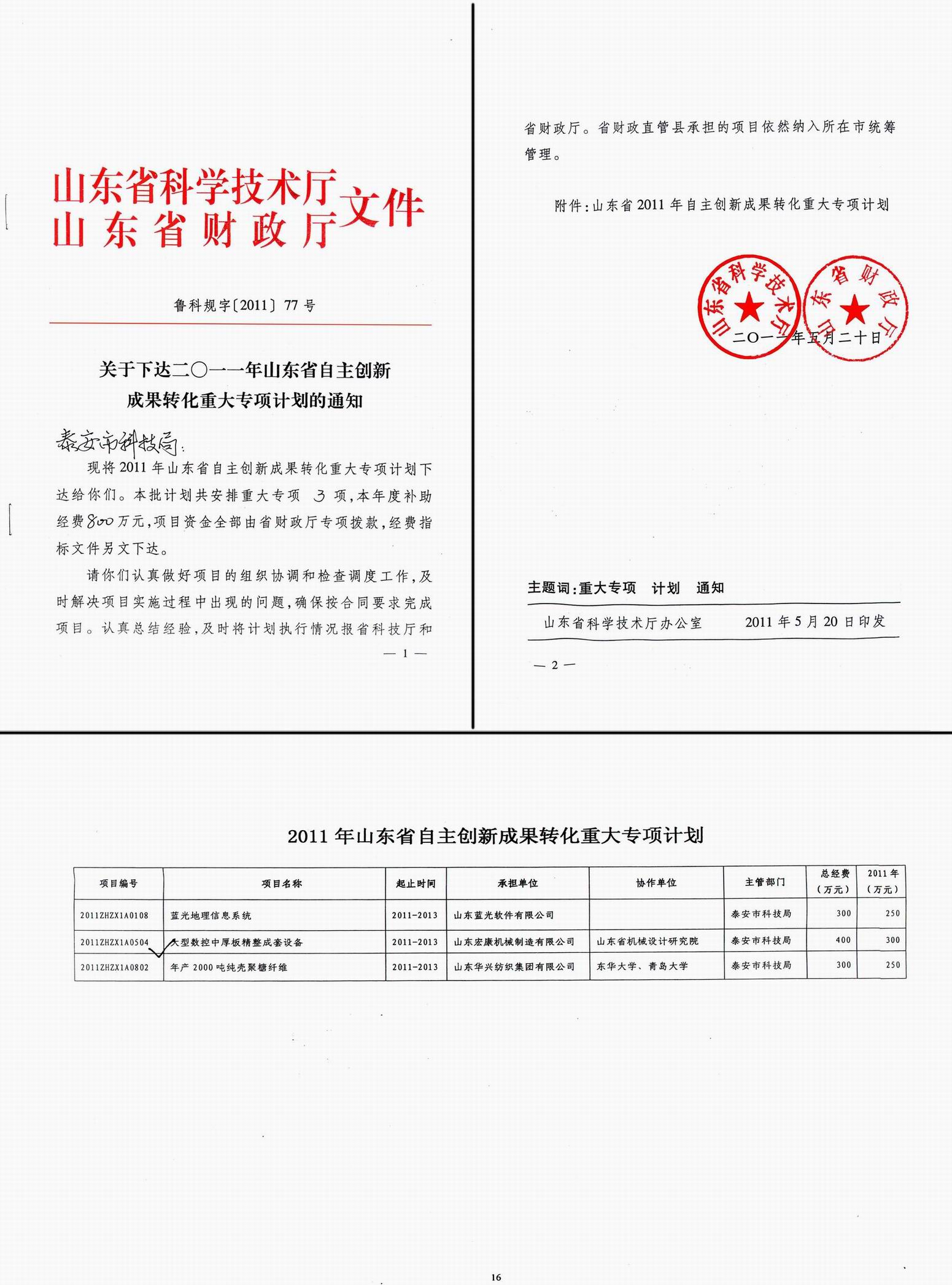 經區、市兩級科技主管(guǎn)部門推薦,省科(kē)技廳組織專家評審和研(yán)究,我公司“大型數(shù)控中厚板精整成套設備產業化項目”從眾(zhòng)多備選項目中脫穎而出,被列入2011年山東省自主創新成(chéng)果轉(zhuǎn)化重大專項計劃,並獲(huò)得省政府400萬元無償資(zī)金扶持。
