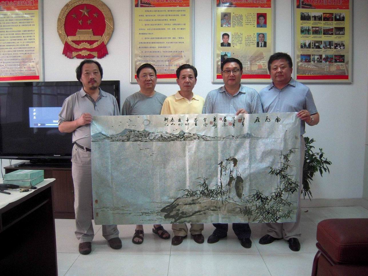 經過一天的即興創作,4位畫家共創作書畫(huà)作品28 件,作(zuò)品內容豐富多彩,格調清新高雅、風格各(gè)異,展現人間真、善(shàn)、美。具有較高的藝術水平和觀賞價值。書言誌(zhì),畫傳情,讓人不禁(jìn)置身於畫的意境,在這炎炎夏日,感到陣陣清涼,神清氣(qì)爽。其中一幅《南飛燕》作品(pǐn)由四位畫家合作而成:浪(làng)水滔滔,長空中一群大雁歌(gē)聲長鳴(míng),一位智者仰望天空,越發感人深思。表現(xiàn)了幾位藝術家深厚的生(shēng)活(huó)積累和不俗的藝術功底,博得公司領(lǐng)導的一致好評。