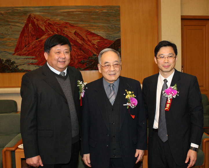 董事長(zhǎng)、總經理康鳳明與中國機械工業聯(lián)合會名譽(yù)會長、原國家機械工業部部長何光遠(中)、中國工業報副總(zǒng)編輯溫舜方(右)在論壇會上(shàng)