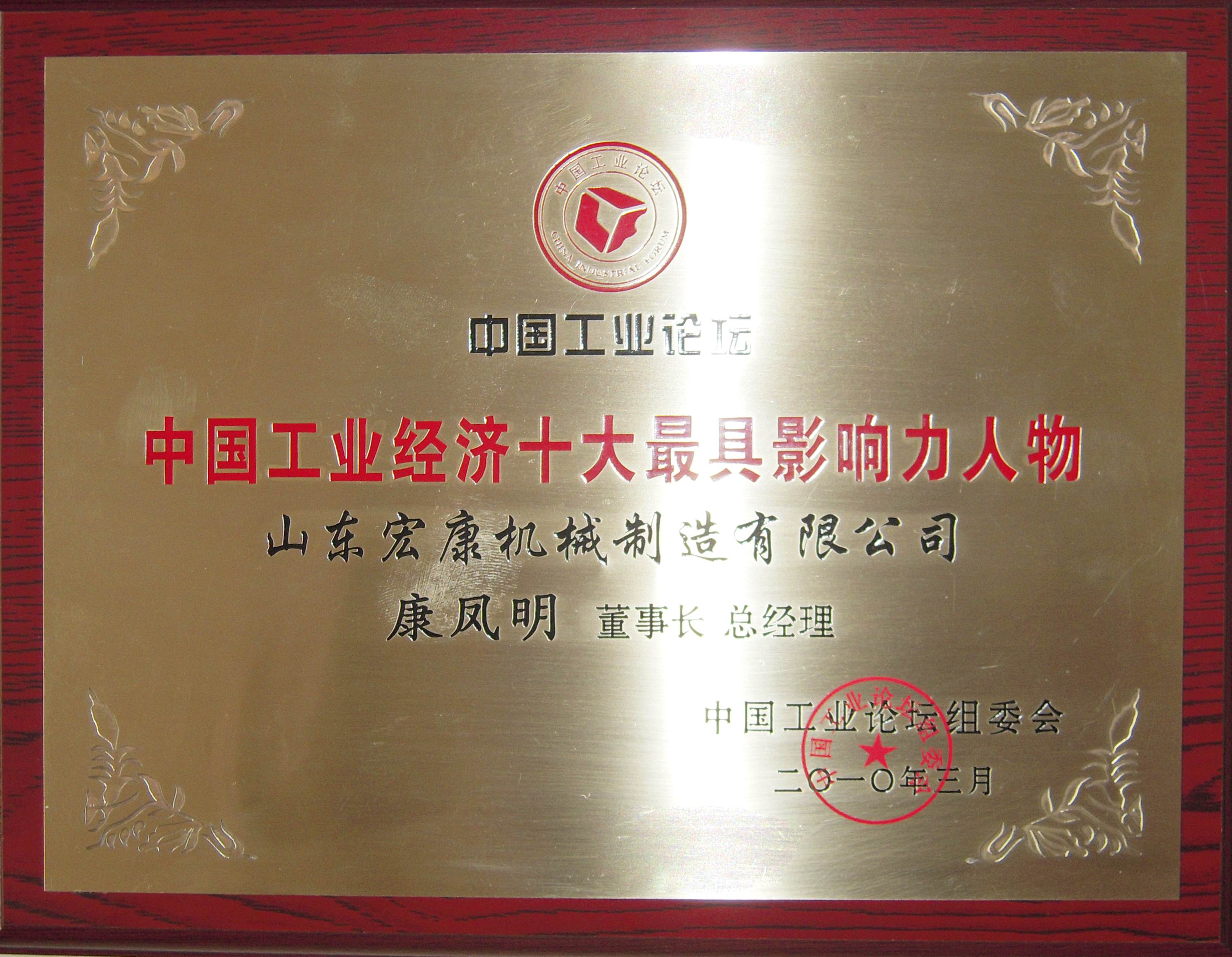 董事長、總經理康鳳明被評為“中國工業(yè)經濟十大最具(jù)影響力人物”