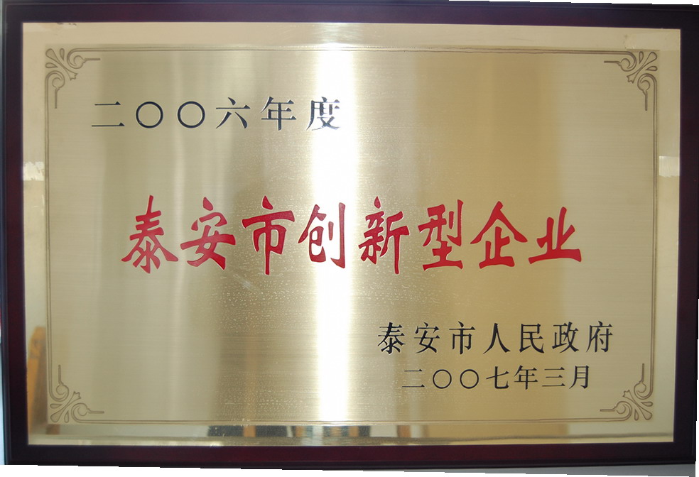 我(wǒ)公(gōng)司被泰安市政府認定為“泰安(ān)市創新型企業”,並在前不久召開的2007年全市經濟工作大會上為我公司頒發了(le)獎牌和(hé)十萬元獎金。在全市10多家獲獎企業中,我(wǒ)公司是岱嶽區(qū)2006年度唯(wéi)一獲此殊榮的企業。