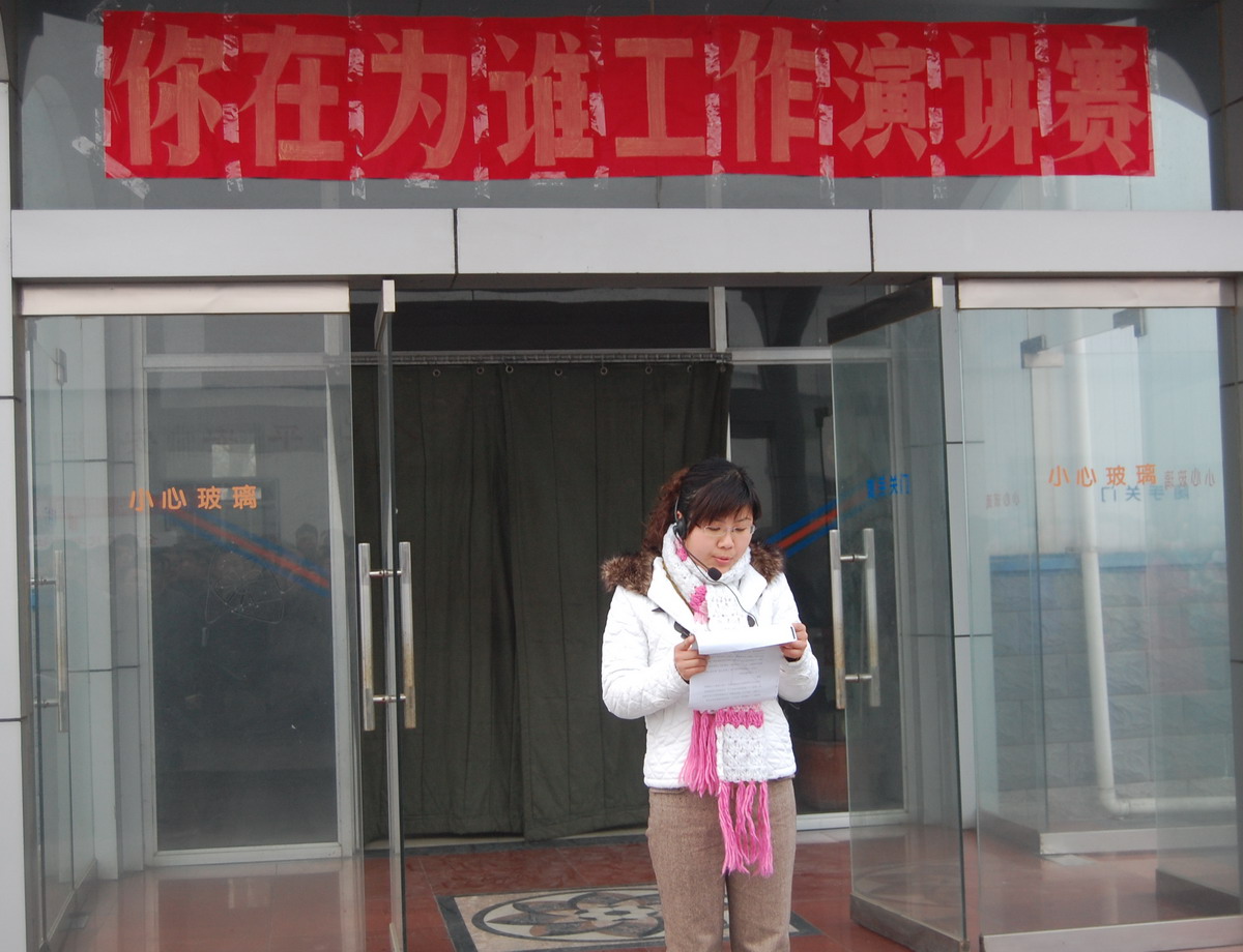 在(zài)學習的基礎上(shàng),於12月(yuè)24日活動領導小組從百餘名職(zhí)員中選出12名選手參加了演講預賽(sài)。經激烈角逐(zhú),吳彬、黃迎春奪得了預賽一等獎,孫衛東、雷慧明、楊蕊、王(wáng)開蘭獲得二等獎,趙(zhào)雙雙、韓誌仁、馬甜、石紅、朱學慧、王繼增獲得三等獎。