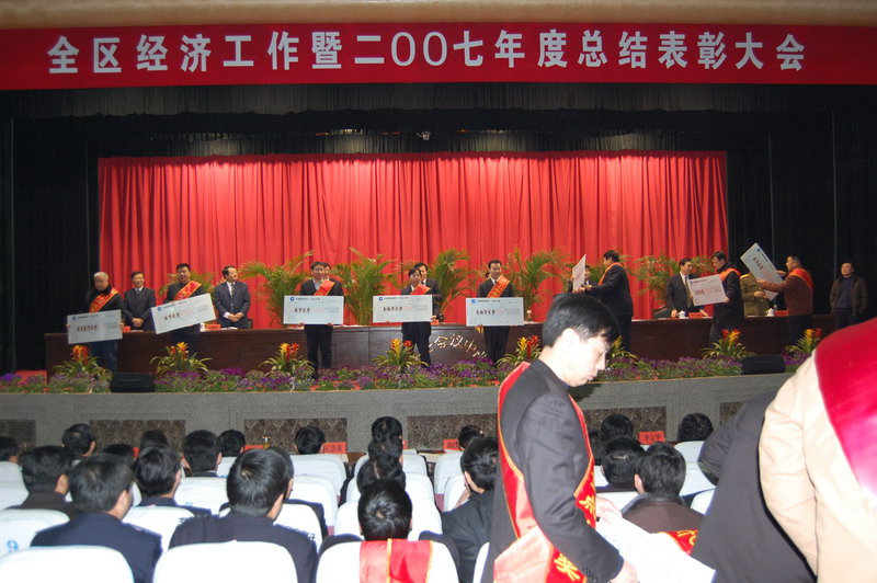 2月14日上午,董事長、總經理康鳳(fèng)明參加岱嶽區(qū)經濟工作會議暨2007年度總結(jié)表彰大會,並(bìng)上台領獎。我公司“省級企(qǐ)業技術中心”項目獲獎金30萬元,康總獲2007年度全區“十大民營(yíng)企業家”榮(róng)譽稱號,並獲“招商項目引薦人(rén)”獎金2萬元。