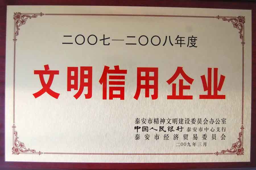 公司被授予的2007-2008年度文明信用企業稱號