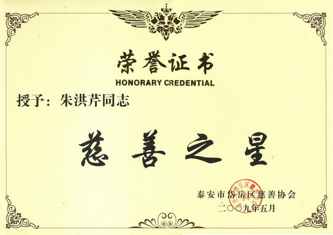 5月22日,在岱嶽區召開的“全(quán)區慈善工作暨慈善月動員會議”上,公司被授予“最具愛心企業”稱號(hào),副董事長朱(zhū)洪(hóng)芹被岱嶽(yuè)區慈善協會授予“慈善之(zhī)星”稱號。